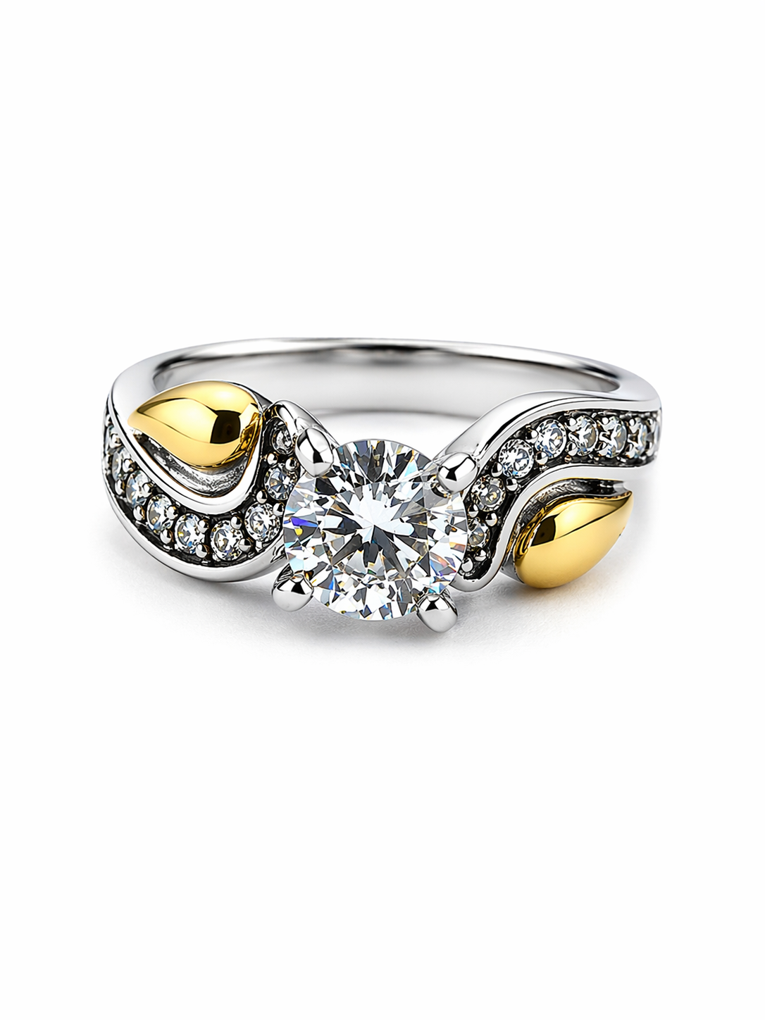 Elegante anillo de compromiso elaborado en plata 925 con finos detalles en oro, que realzan su diseño y brillo. Una pieza sofisticada y duradera, ideal para sellar momentos especiales.