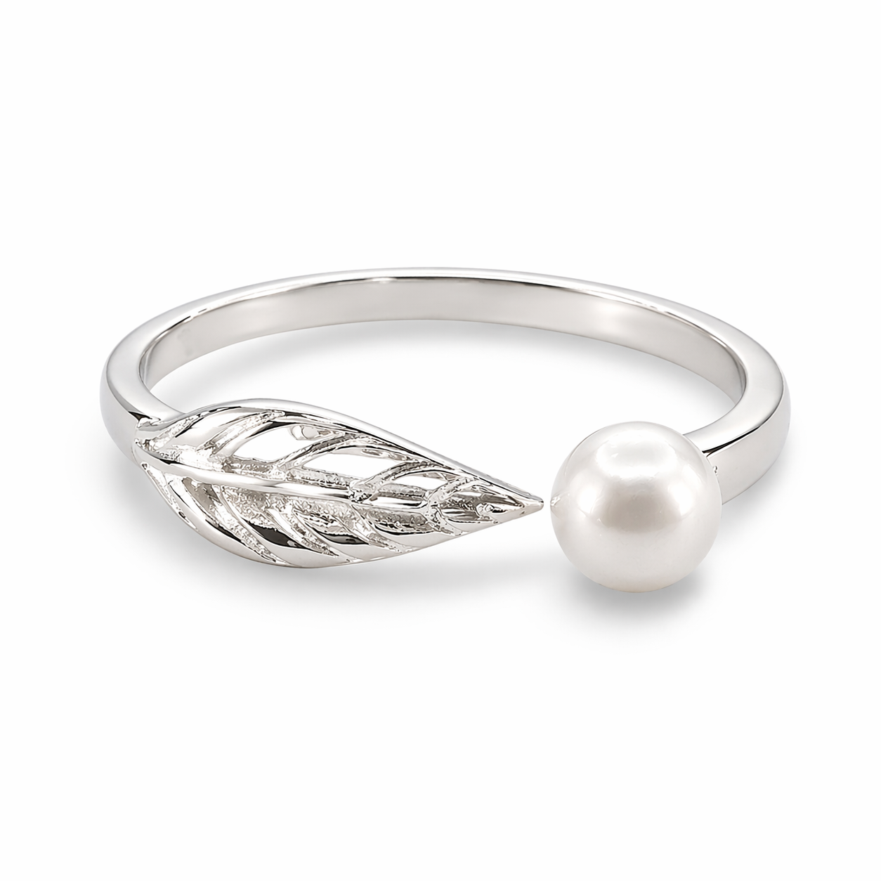 Elegante anillo ajustable con diseño de hoja, elaborado en plata italiana y decorado con una delicada perla. Un estilo natural y sofisticado, ideal para cualquier ocasión.