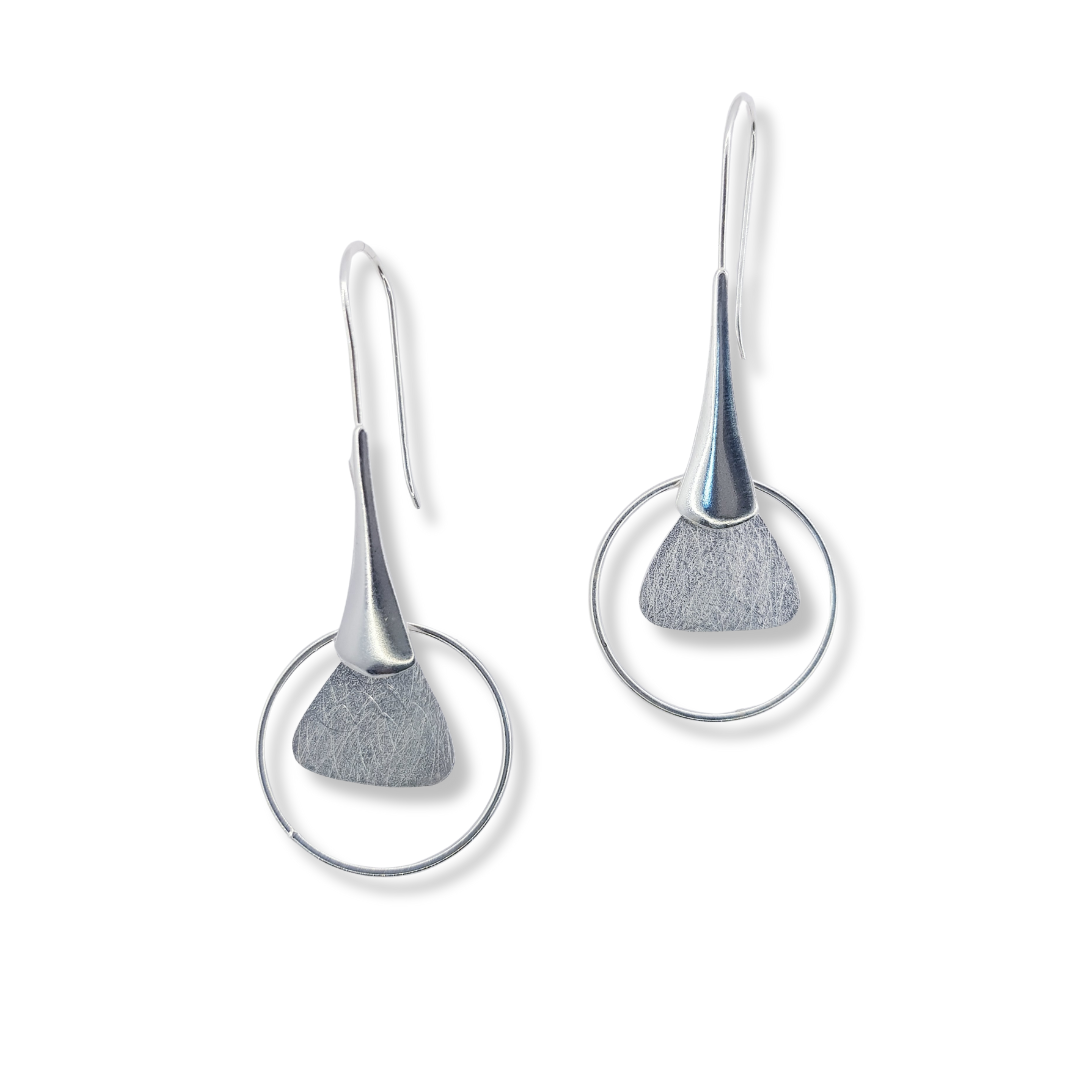 Aros colgantes de plata 925 con acabado satinado, de diseño moderno y sutil. Su textura mate aporta un toque sofisticado y minimalista, ideal para un estilo elegante y contemporáneo.