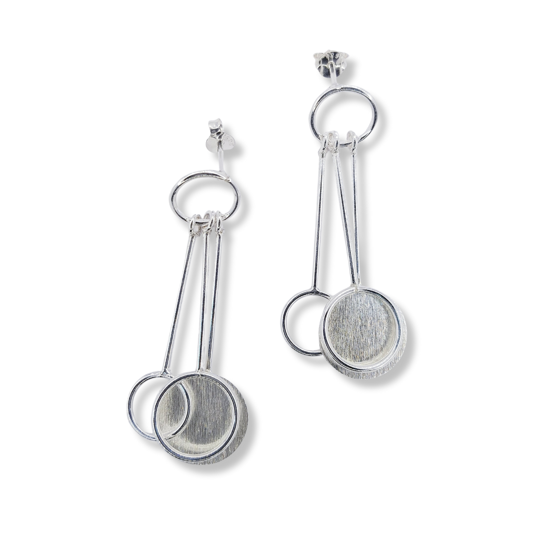 Aros colgantes de plata 925 con acabado satinado, de diseño moderno y sutil. Su textura mate aporta un toque sofisticado y minimalista, ideal para un estilo elegante y contemporáneo.