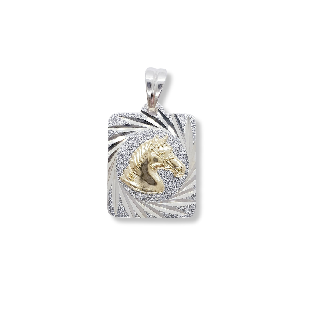 Colgante religioso en plata con detalles en oro, símbolo de fe y devoción, diseñado con elegancia para llevar la espiritualidad siempre contigo.