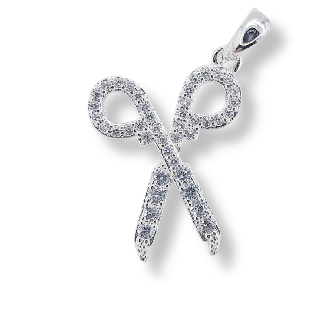 Colgante en forma de tijera de peluquería, elaborado en plata italiana. Un diseño original y profesional, ideal para estilistas o amantes de la belleza.