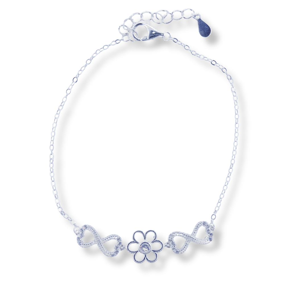 Pulsera Flor con Infinito de Plata Italiana con Circonia