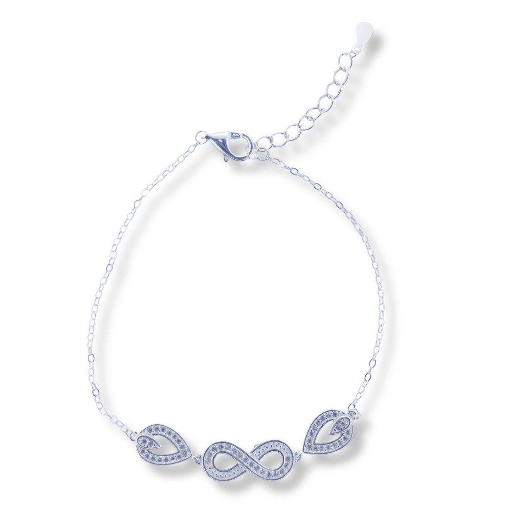 Elegante pulsera con símbolo de infinito, elaborada en plata italiana y decorada con circonia brillante. Representa eternidad y estilo en una pieza delicada y versátil.