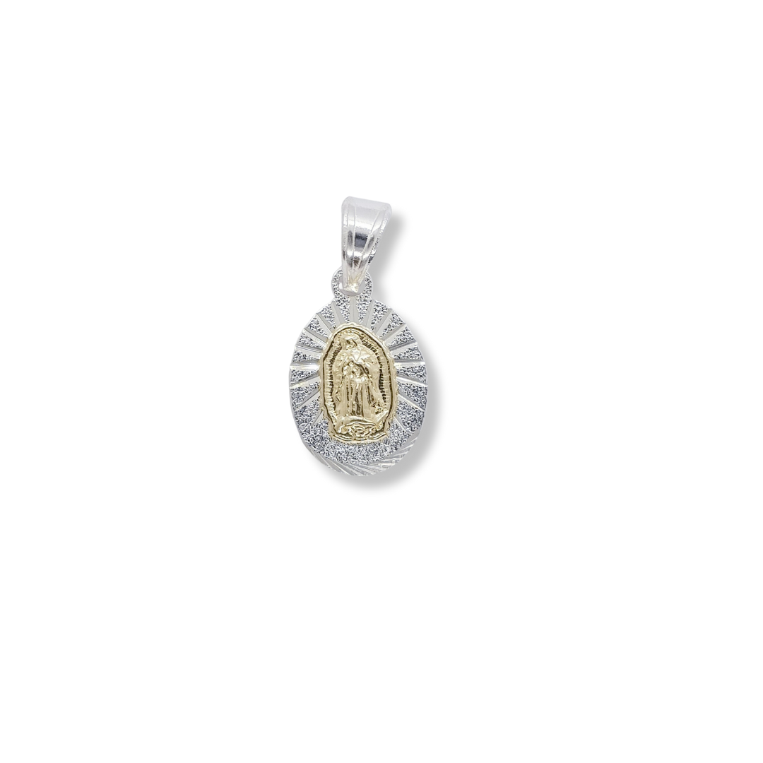 Colgante religioso en plata con detalles en oro, símbolo de fe y devoción, diseñado con elegancia para llevar la espiritualidad siempre contigo.